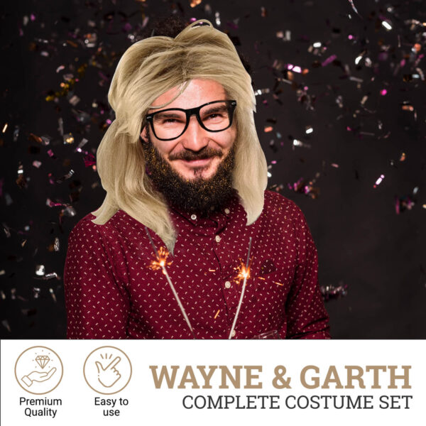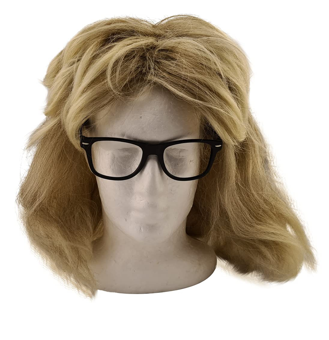 HandinHandCreations Garth Wig and Glasses Costume Set Blonde Mullet for Waynes Complete Look