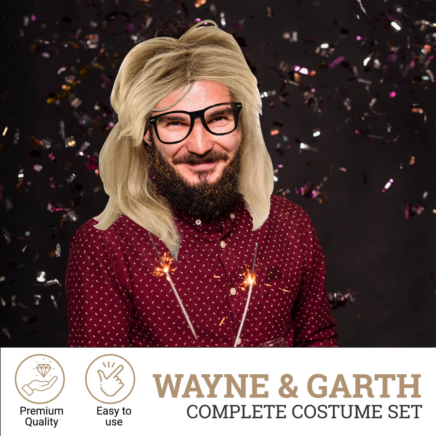 Wild Blonde Garth Wig with Glasses