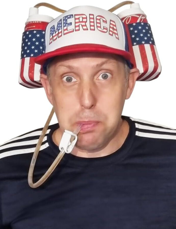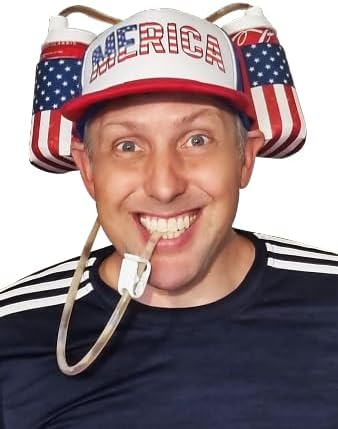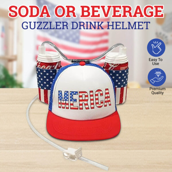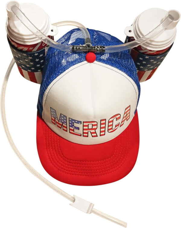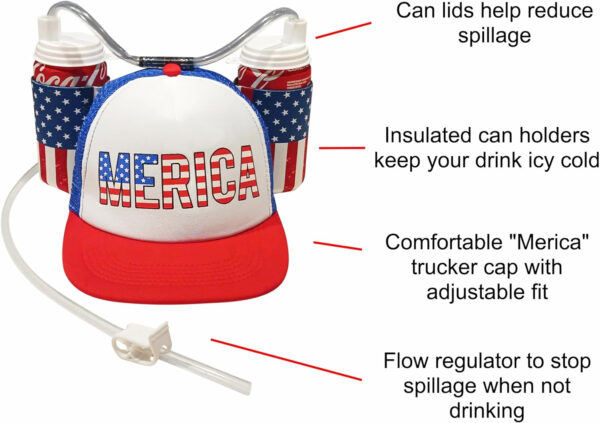 HandinHandCreations USA Merica Drinking Cap Adjustable Size with Straw for Soda or Beverage Guzzler Drink Helmet – America
