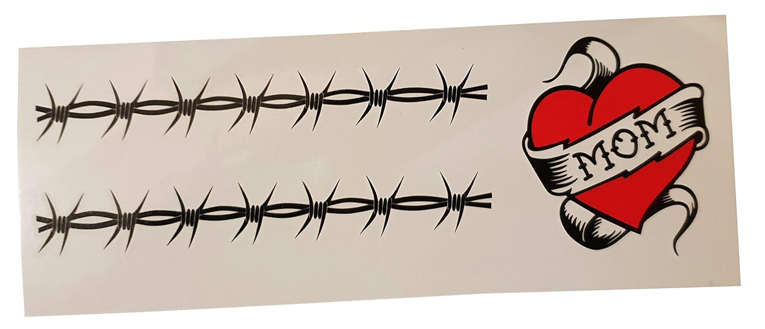 The Rocker Wig is the hottest piece since kiss! Your search ends here, Everything you need to rock out this weekend is here.Beautiful Blonde Hair that even makes the ladies jealous, Aviator Glasses that will block out every eye trying to get into your fame, a Classic Blue Bandanna to hold your wig down when your waving your hair like you just don't care, and finally Tattoos are included to put the final touch of creativity on this masterpiece. Barb wire and I love mom! This Costume is your one stop shop for EVERY event