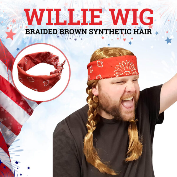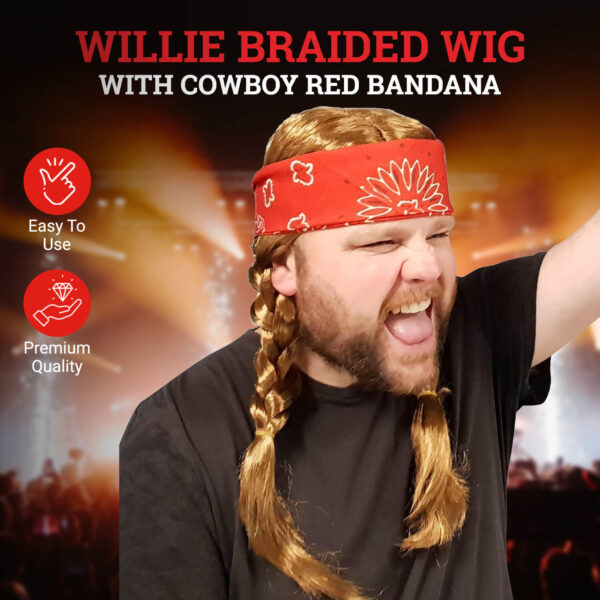 Willie Braided Wig with Cowboy Red Bandana – Hillbilly Country Red Neck Hippie Costume